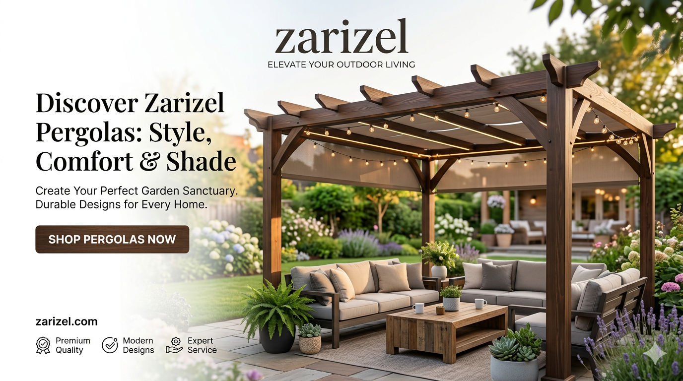 Welcome to Zerizal, your trusted online destination for stylish and high-quality pergolas. Our goal is to help you transform your outdoor space into a beautiful, comfortable place where you can relax, entertain guests, and enjoy time with family.At Zerizal, we offer elegant pergolas designed to enhance your outdoor space, adding beauty, shade, and comfort to your garden, patio, or backyard.Create a comfortable shaded area with our pergolas, perfect for relaxing, dining outdoors, or enjoying peaceful moments in your backyard.